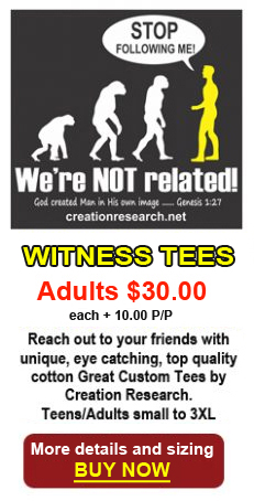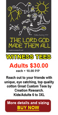 Become part of the Creation Research Support Team Worldwide and help spread God’s Word about God’s World by purchasing our Books, MP3s, MP4s, T-shirts, through your gifts and your prayers. |